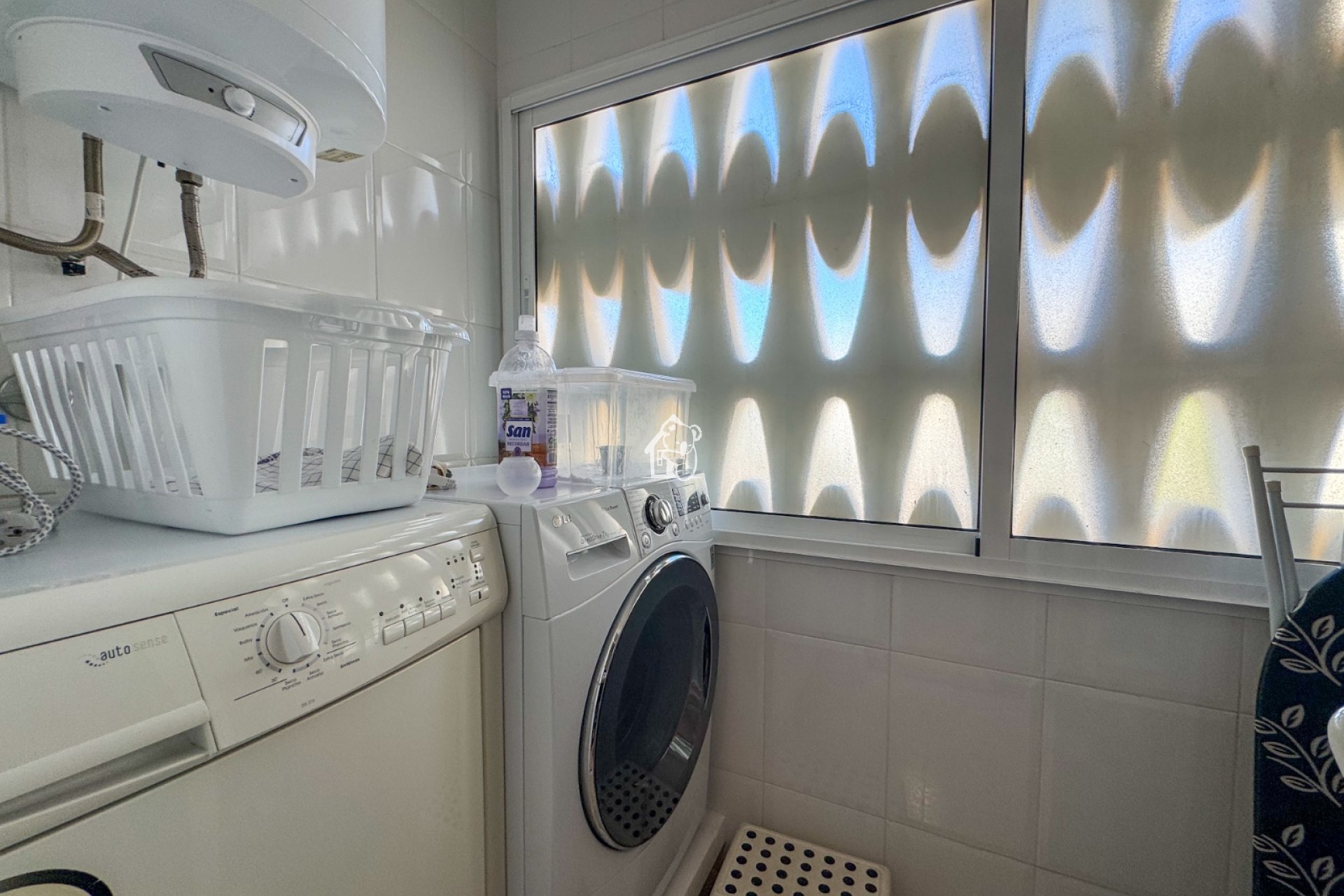 Incluye lavadero con lavadora y secadora, trastero y plaza de garaje cerrada. La casa se sitúa frente a la piscina principal del residencial y también tiene acceso a una segunda piscina en la parte trasera.