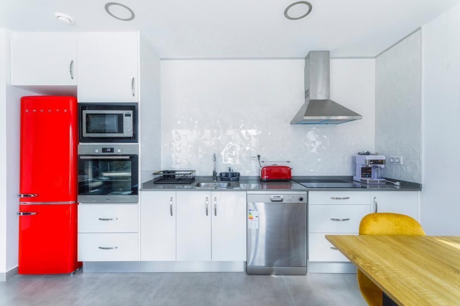 La casa está amueblada con muebles y electrodomésticos de alta gama, lo que significa que puedes mudarte directamente sin preocuparte por comprar muebles o electrodomésticos nuevos. Además, el aire acondicionado proporciona un ambiente fresco y confortable durante todo el año.